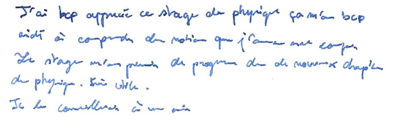 Pour la semaine du Nouvel An, en plus des mathématiques et du français, nous proposons un stage de physique-chimie. Voici les horaires.
